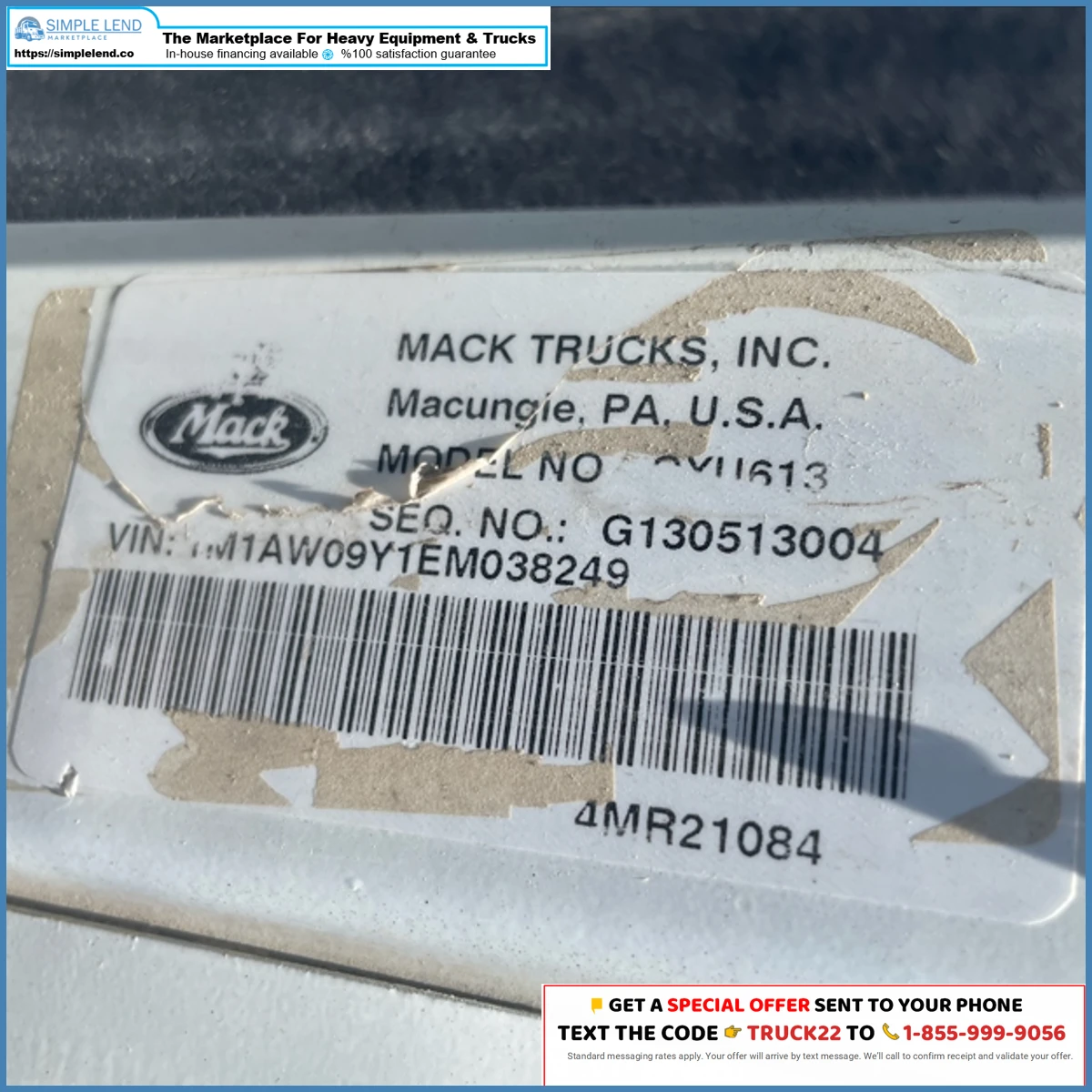 TEXT TRUCK22 TO 1-855-999-9056